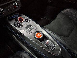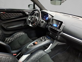 - Pespuntes en contraste sobre el tablero de a bordo, asientos y paneles de puerta en azul Alpine