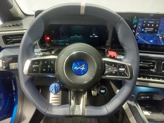 - Centro del volante con logotipo Alpine sobre fondo azul