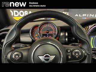 Paquete John Cooper Works Interior. Incluye: Volante de cuero JCW (2XC), pomo del cambio de marchas JCW con costuras rojas, asientos deportivos con tapicería de tela Double Stripe Carbon Black (BZE1), molduras de entrada JCW, revestimiento del techo en antracita (4AA) y revestimiento de los pedales en acero inox.